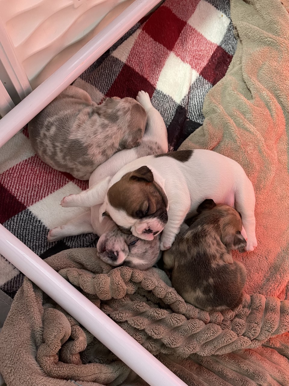 All of our French and English Bulldog puppies are our family and passion. They’ve all lived inside our home with us. They’ve slept on our couches, in our beds and just about anywhere else they find comfortable. We’ve taken our health testing to the next level with OFA tests www.ofa.org. We’ve wanted to be sure that we are producing quality and healthy puppies. Here are some past puppies!